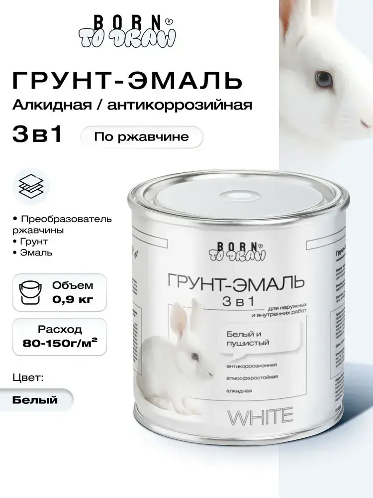 Грунт эмаль по ржавчине 3 в 1, Краска по ржавчине для металла, по дереву, глянцевая, Белая / 0,9 кг