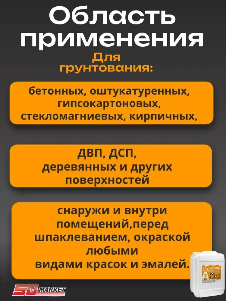 Грунтовка для стен потолков, акриловая, водная, универсальная глубокого проникновения А3 10л