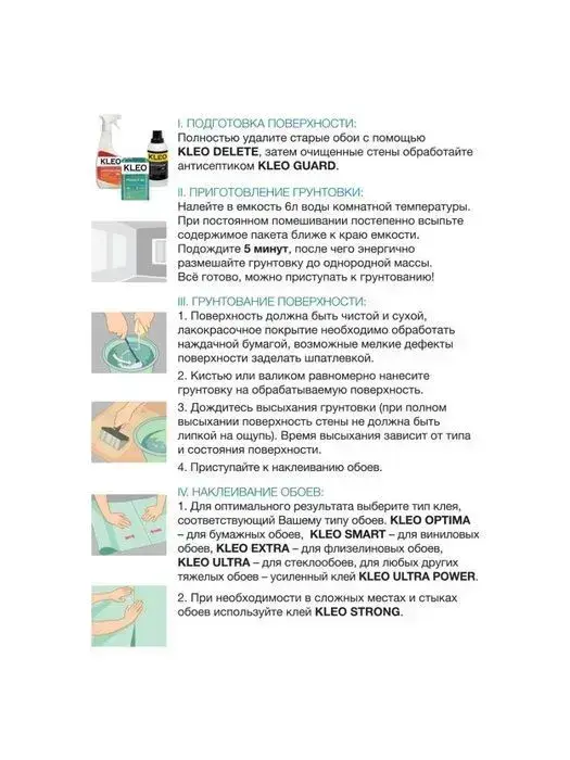 Грунтовка KLEO PRIMER 40 сыпучая на 40 кв.м. Для грунтования стен и для подготовки поверхности перед наклеиванием всех видов обоев.