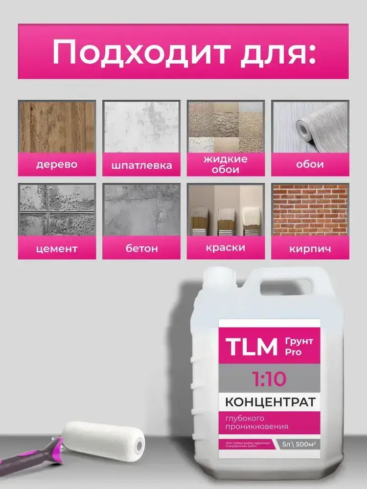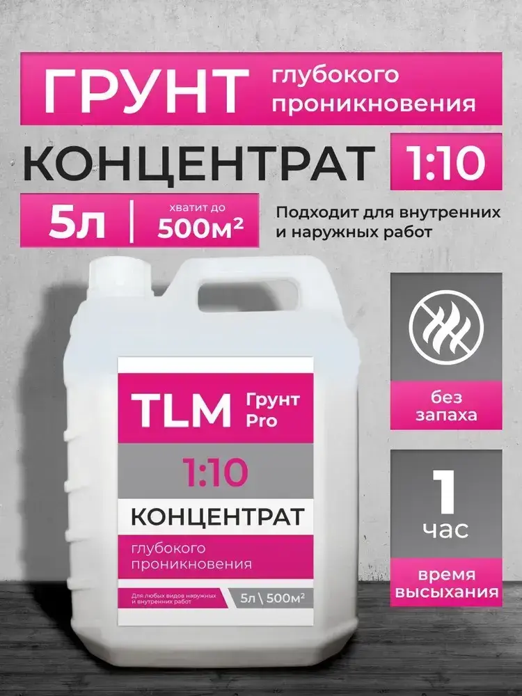Грунтовка концентрат глубокого проникновения 1:10, для стен, под обои - 5 л.