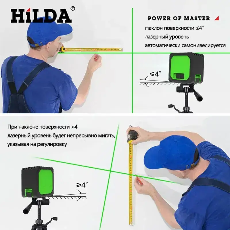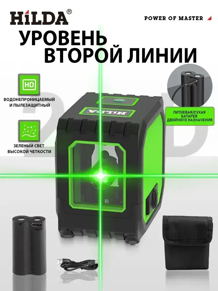 HiLDA Лазерный уровень/нивелир Зеленыйлуч/2 линии/С литиевой батареей