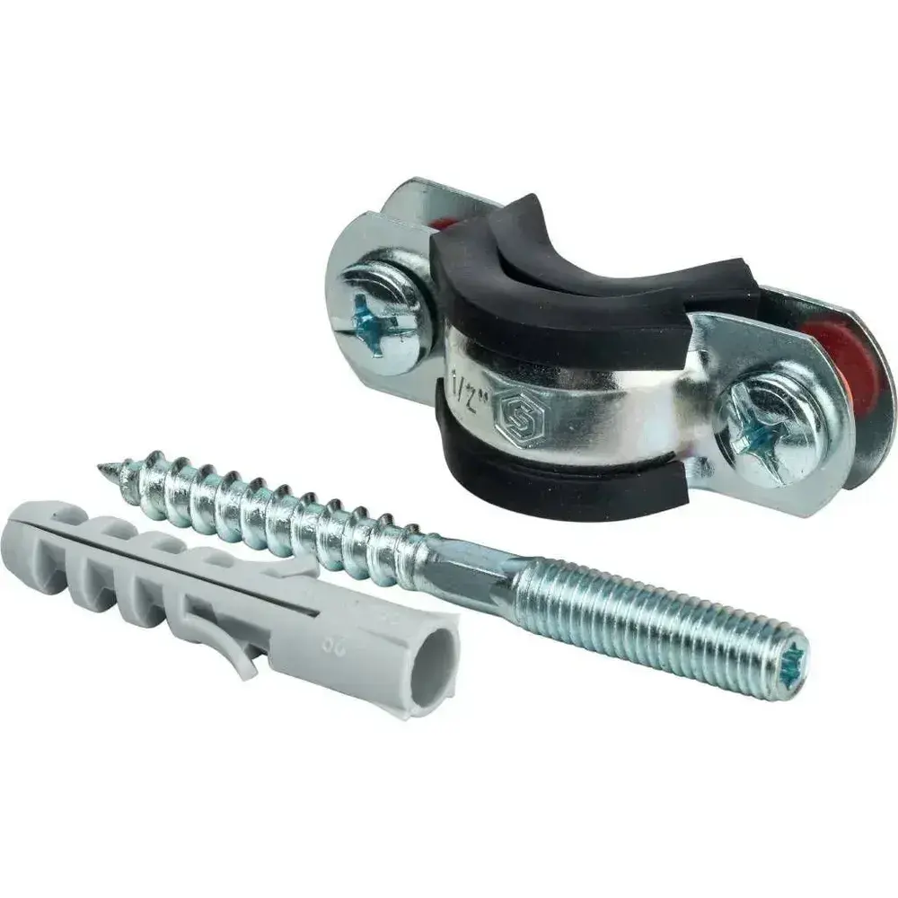 Хомут для труб STOUT комплект: хомут+шпилька+шуруп+дюбель пластиковый 1/2"(20-24)