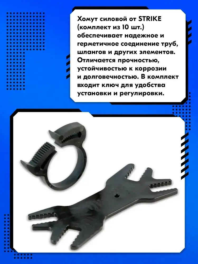 Хомут силовой 22-26 мм "Clip-Track" (комплект 10 шт+ключ)