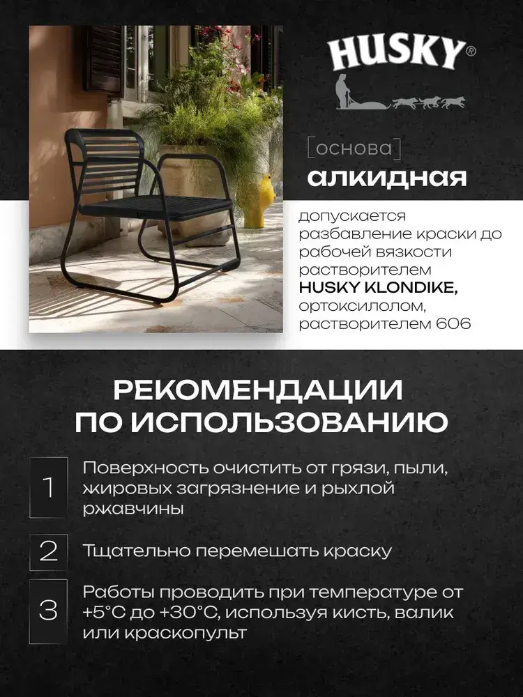 HUSKY KLONDIKE, Краска по металлу черная глянцевая, RAL9005, по ржавчине, антикорозионная, атмосферостойкая, 0,9 л
