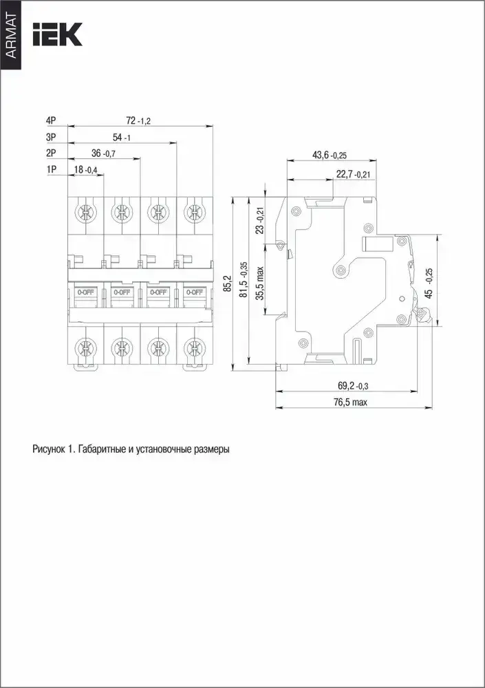 IEK ARMAT Выключатель автоматический однополюсный B 10А M06N (AR-M06N-1-B010)