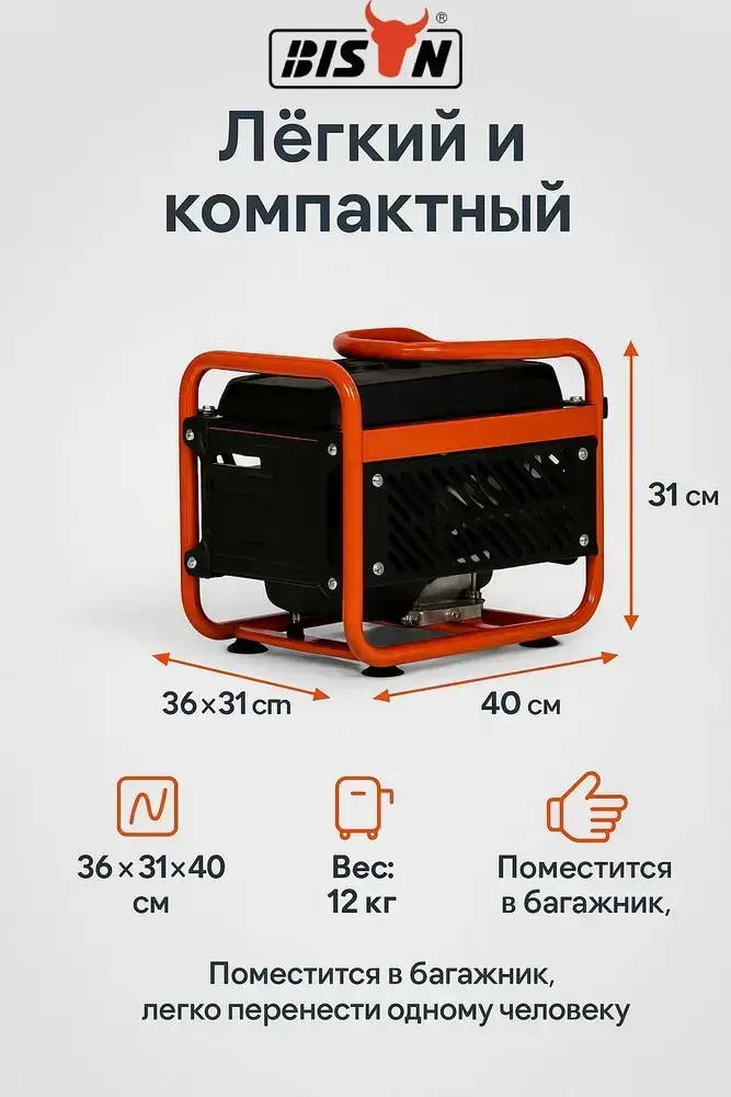Инверторный бензиновый генератор BISON BS1500i с ручным запуском, 1.2 кВт / 2.5 лс, (20306)