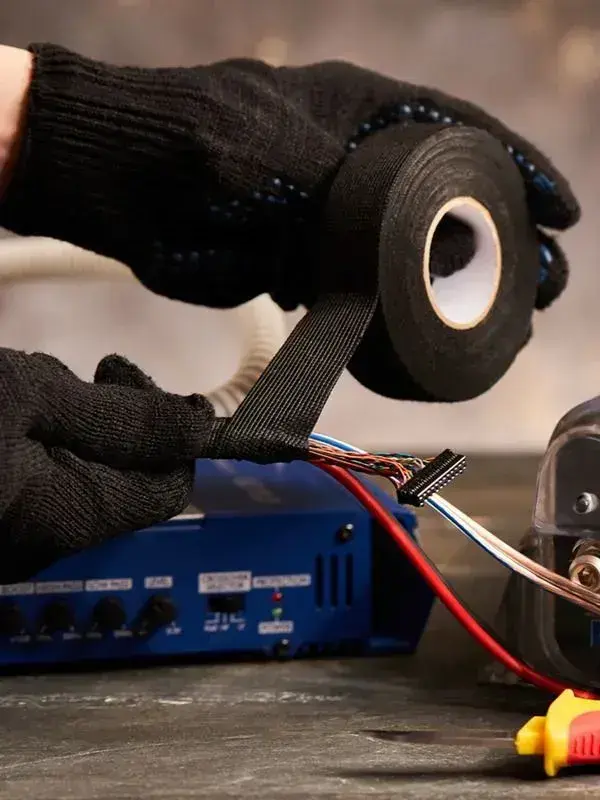 Изолента черная автомобильная 0.3х25 мм 15 м флисовая для проводов KRANZ