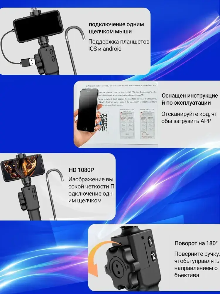 jingleszcn Сочленение эндоскопа 180 градусов рулевого промышленного эндоскопа с зондом диаметром 8,5 мм для iPhone Android 1m