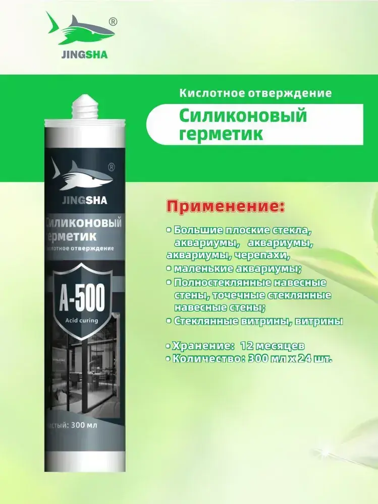 JINGSHA A-500 Кислотно-прозрачный силиконовый герметик для стекла и зеркал - эластичный, устойчивый к плесени, 300 мл