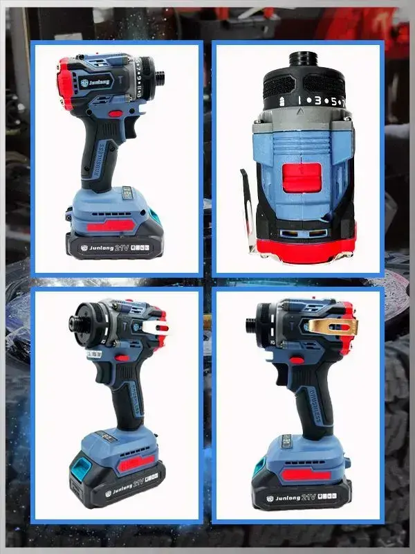 JunLong TooL Электрический ударный шуруповерт с бесщеточной головкой, может быть оснащен патроном, литиевая батарея x2, 21 В