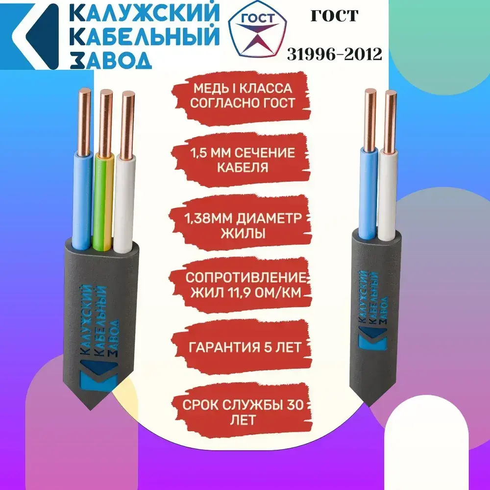 Кабель ВВГ-Пнг(А)-LS 2х1.5 ГОСТ 30 метров Калужский Кабельный Завод