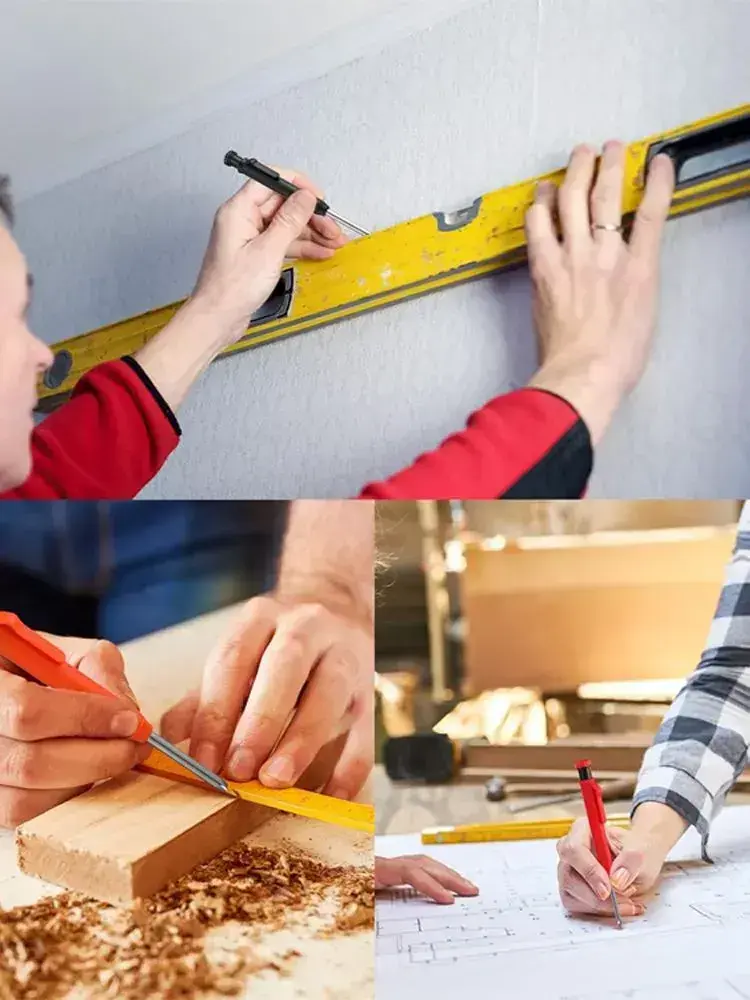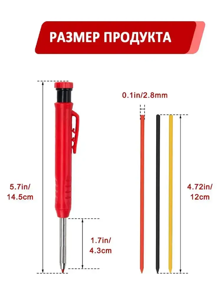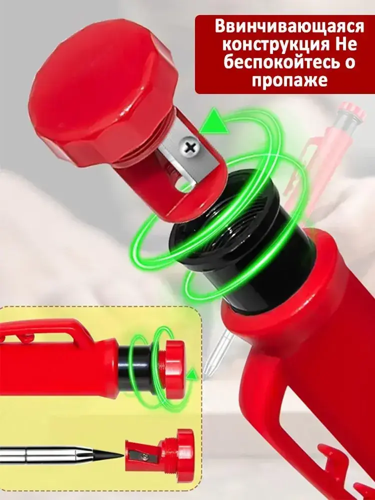 Карандаш строительный с точилкой, с комплектом грифелей.