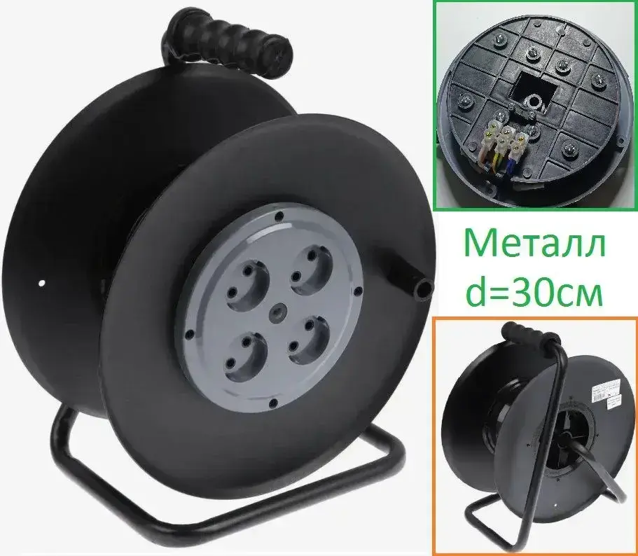 Катушка металлическая 4 розетки без заземления IP20, УХЛ2