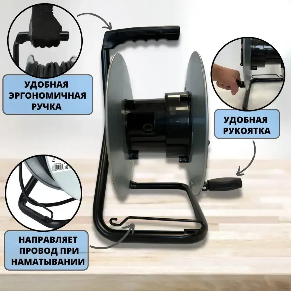 Катушка металлическая для удлинителя Electraline 4 розетки без провода до 70 метров с заземлением