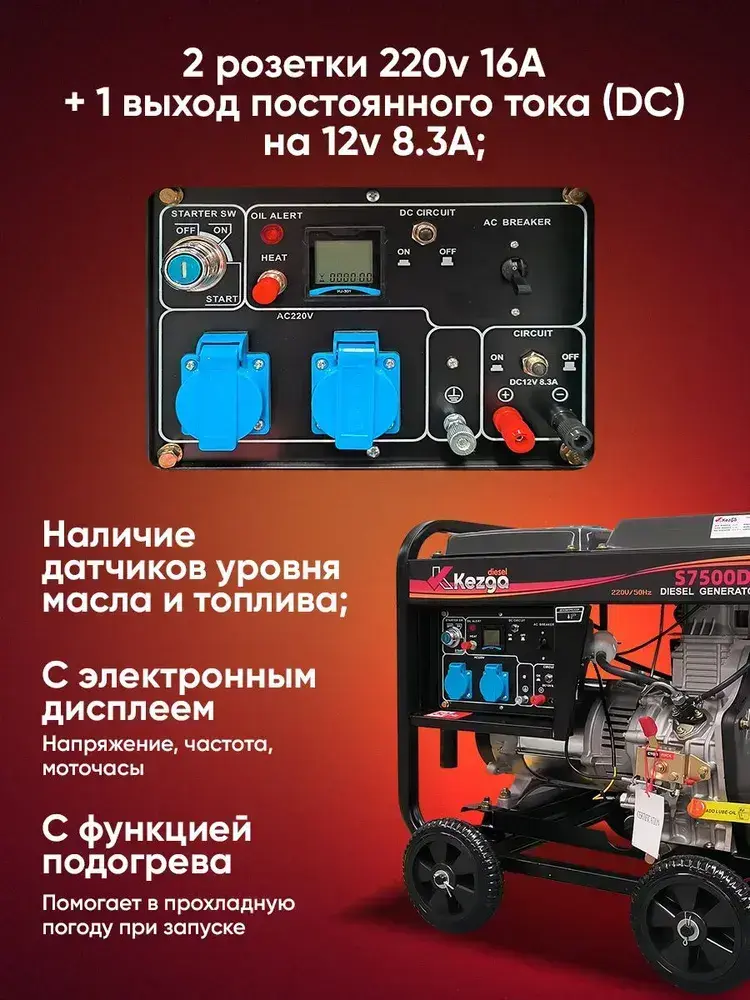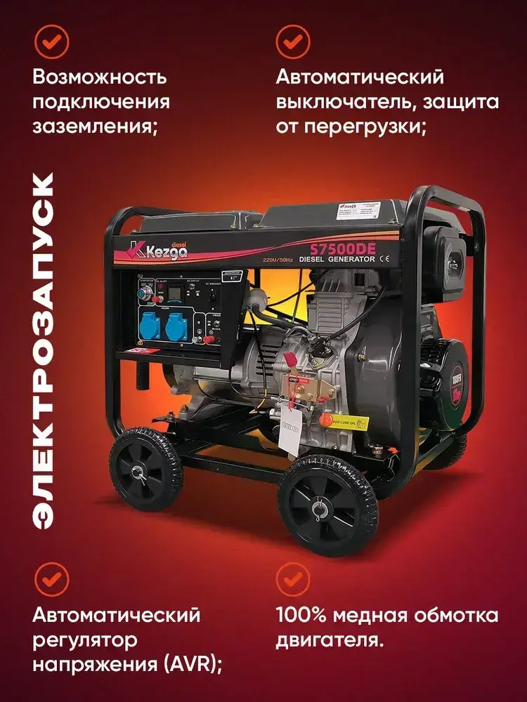Kezga Diesel Generator дизельный генератор 5 кВт (5.5 пиковая) с электрозапуском