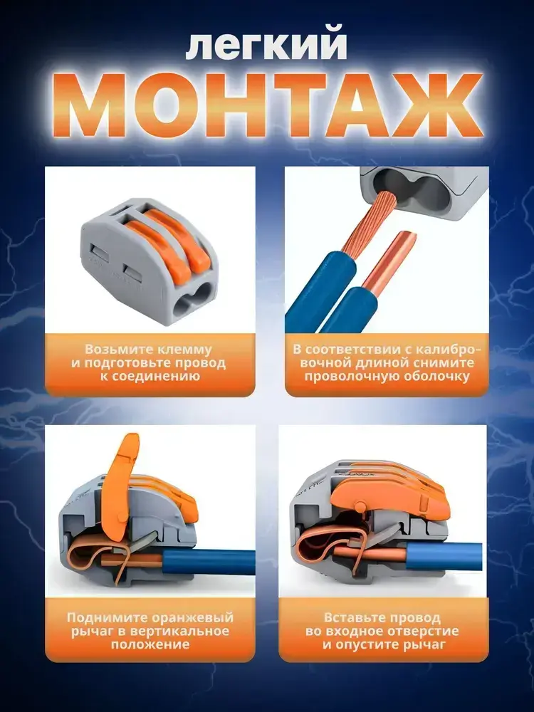 Клемма Vacco PCT-212, 2 контакта, тип WAGO (Ваго), 100 штук в упаковке