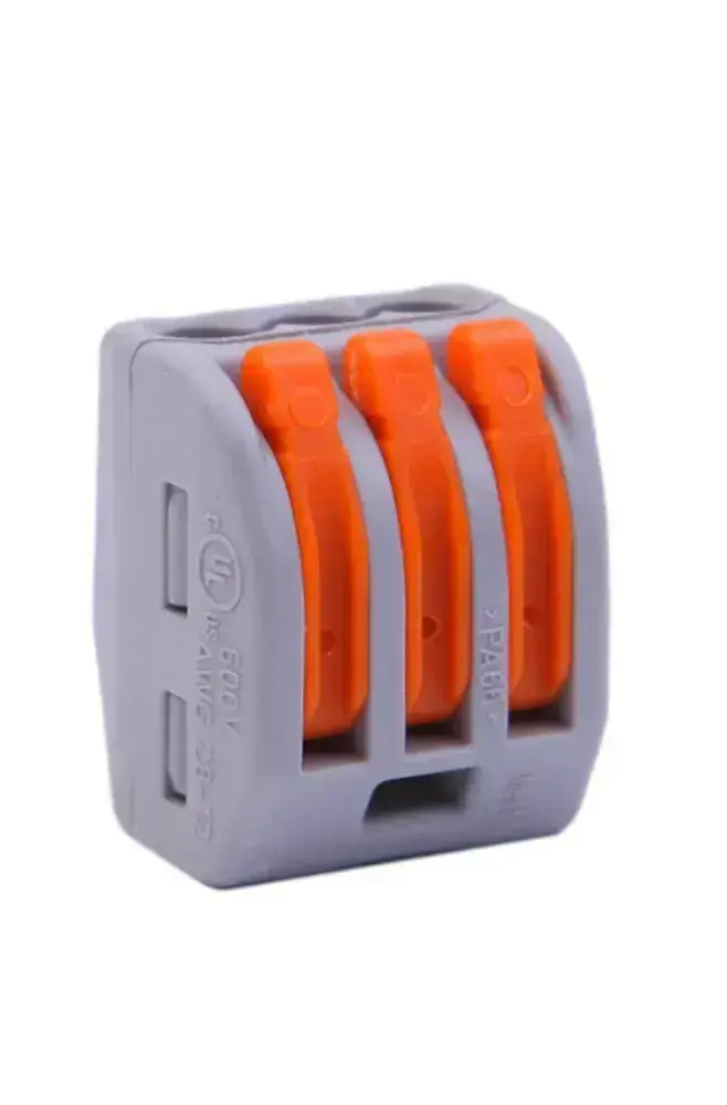 Клеммы Wago 222-413, клеммники соединительные для проводов с рычажком одножильные и многожильные, 3-х контактная (Ваго) 32А , 10 шт