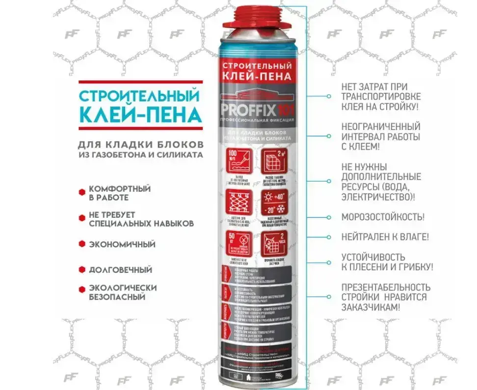 Клей-пена для кладки блоков и кирпича PROFFIX 101,комплект 12 баллонов