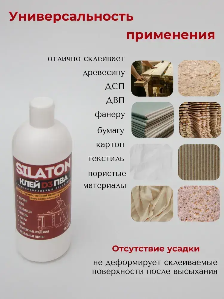 КЛЕЙ ПВА SILATON Профессиональный столярный D3 0.5 кг, водостойкий