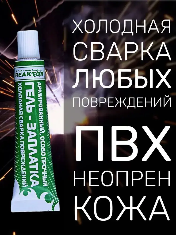 Клей REAKTOR Армированный, цвет СЕРЫЙ 15мл. Особо прочный "ГЕЛЬ-ЗАПЛАТКА" / для изделий из ПВХ без латок / Герметик для лодки