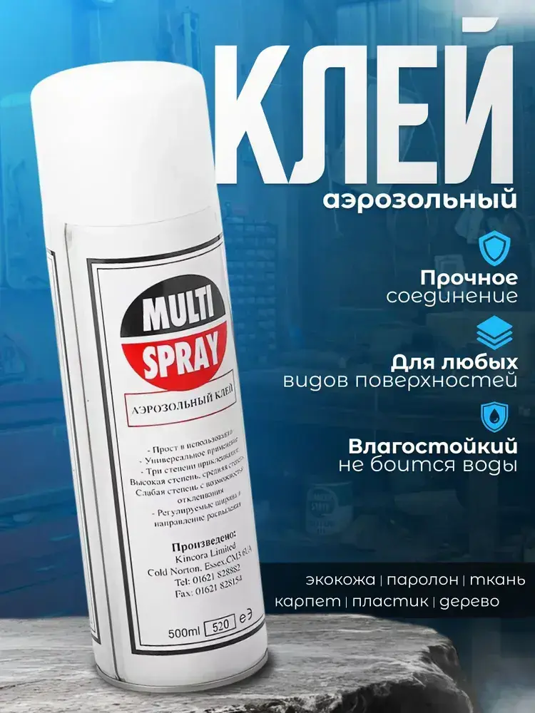 клей спрей универсальный MultiSpray для поролона, для экокожи авто, алькантары,ткани, кожзама, 520мл. клей аэрозольный