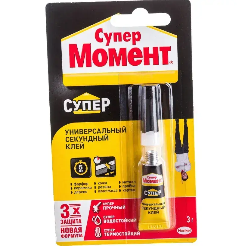 Клей универсальный секундный Момент Супер-клей моментный прозрачный 3 гр. для обуви, дерева, кожи, металла, резины, фарфора, стекла, ремонта вещей
