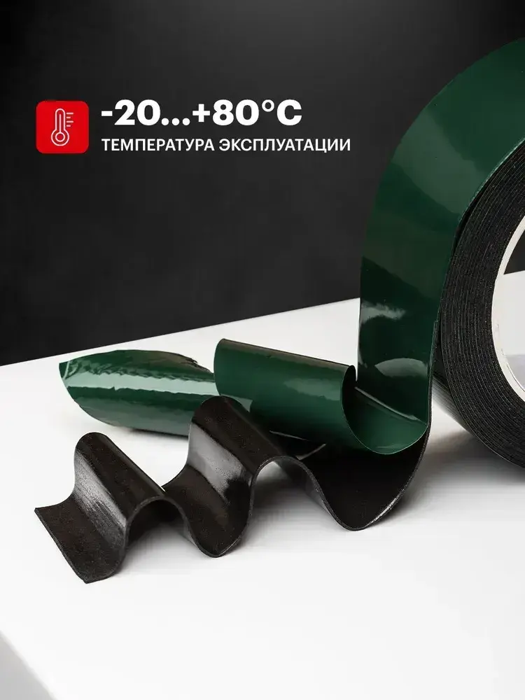 Клейкая лента двусторонняя 5 м х 40 мм REXANT на вспененной ЭВА основе, черная, двухсторонний скотч