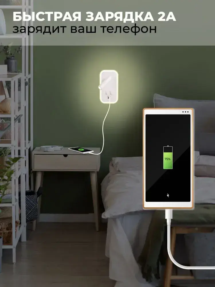 Кнопочный светильник бра светодиодный с USB и Type-C 13 ВТ