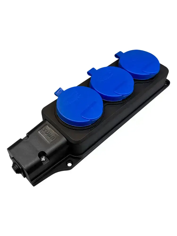 Колодка для удлинителя каучуковая 3 розетки / 16А / уличная, силовая с заземлением
