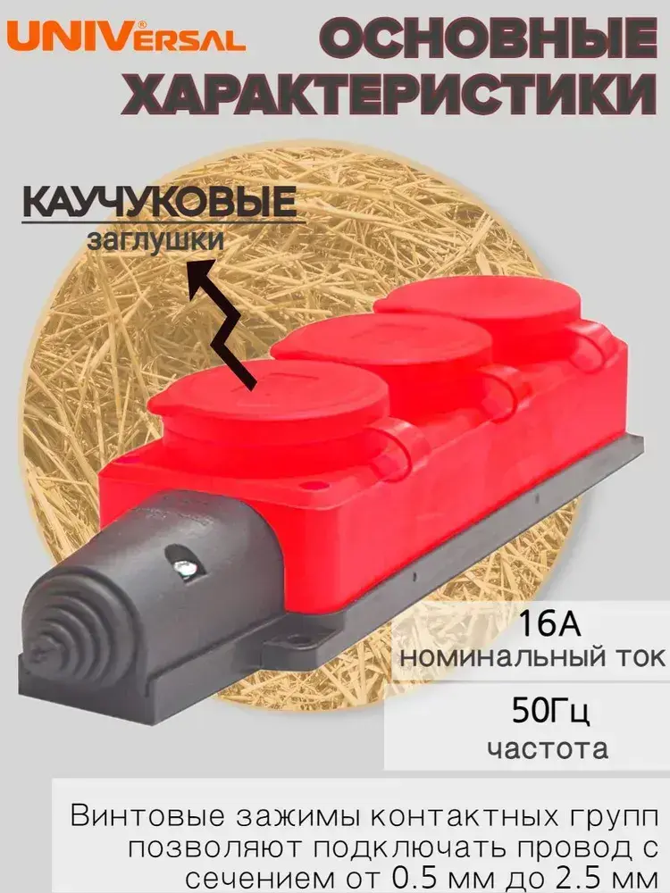 Колодка каучуковая влагозащищенная 3-х местная красная