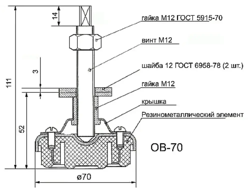 Компактная виброизолирующая опора ОВ-70 РОСВИБРОПРОМ для нейтрализации шума, колебаний и вибрации станков, насосов и другого промышленного оборудования