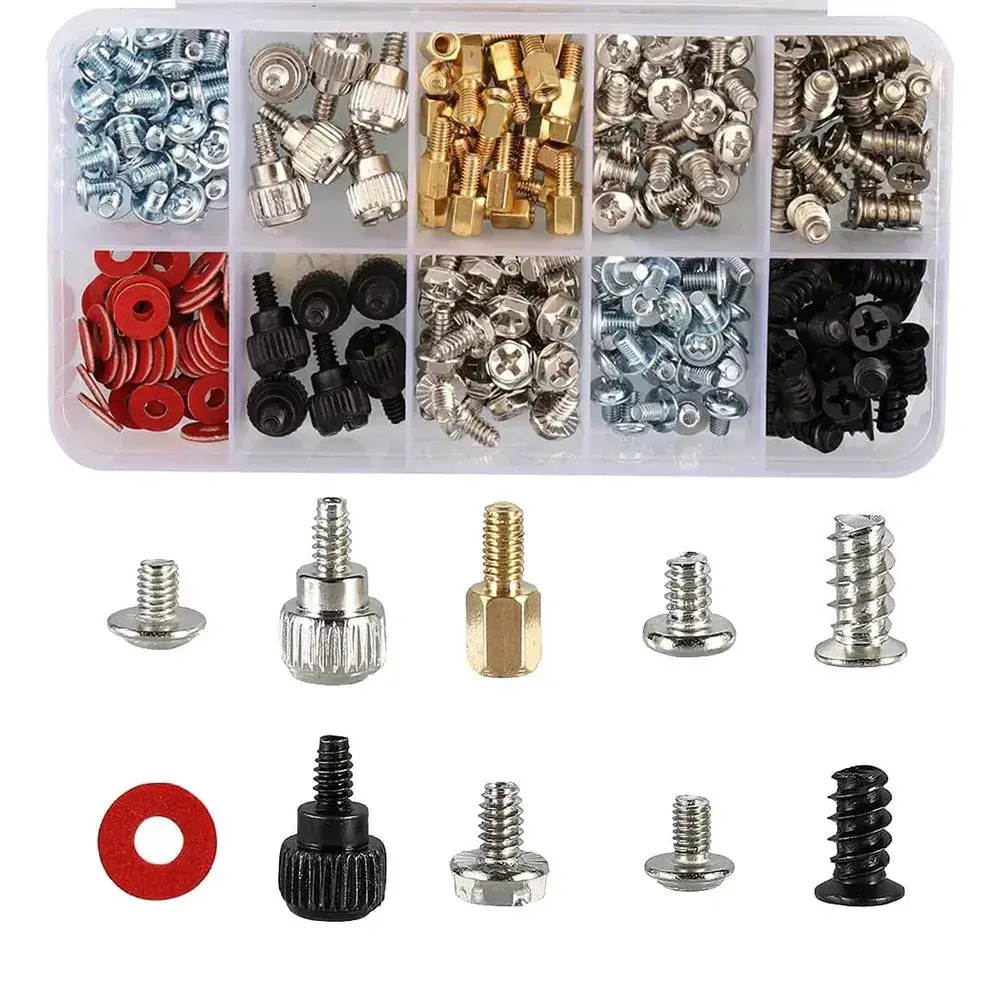 Комплект крепежа для компьютера 228 шт, набор винтов, болтов, шайб для системного блока и вентиляторов: фурнитура для ремонта ПК и крепления материнской платы