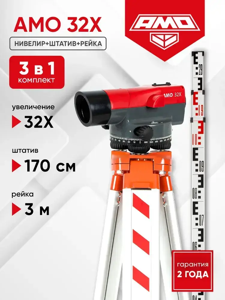 Комплект оптический нивелир AMO 32X + штатив S6-N + рейка AMO S3