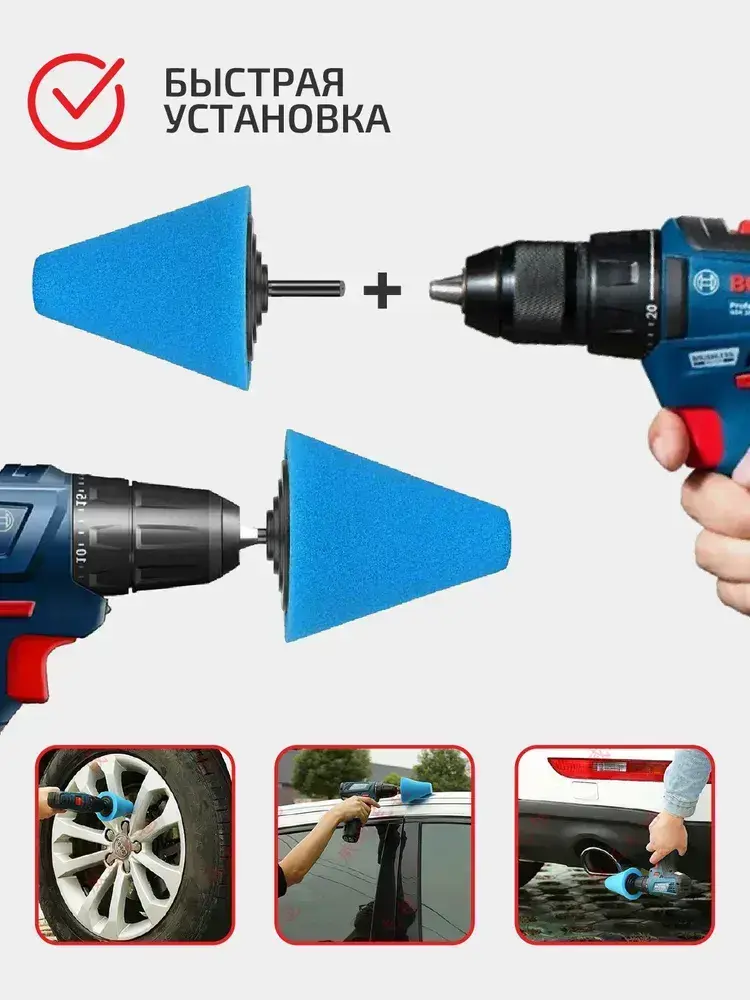 Конусы полировальные для авто, набор 3 шт губки для полировки авто, кузова, дисков и фар насадки для шуруповерта для детейлинга