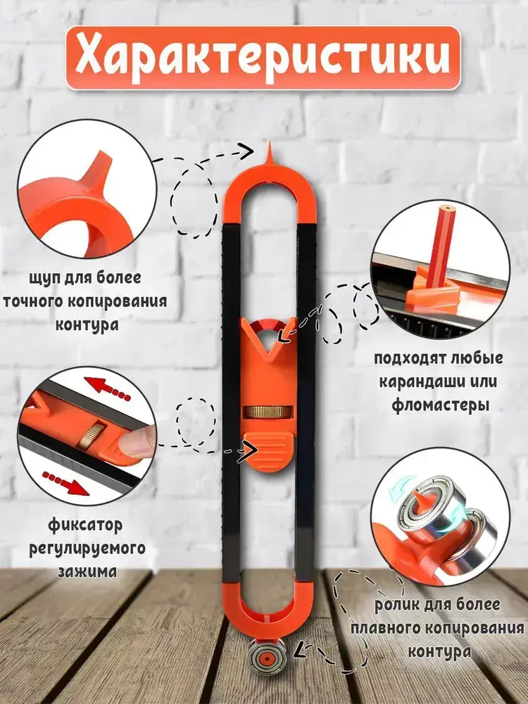 Копировальный шаблон / Контурный шаблон, Разметочный инструмент 230мм х 35мм, Пластик