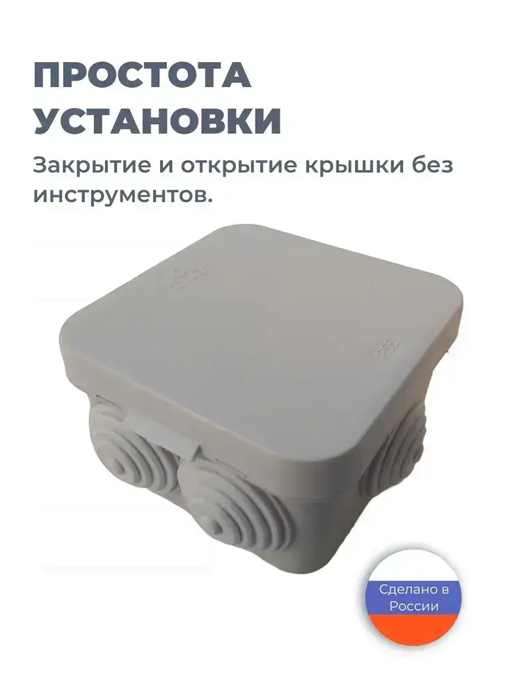 Коробка распределительная 70х70х40 мм., 10 шт. для электрических проводов, монтажная серая, 6 герметичных вводов, пластиковая уличная влагозащищенная IP55, распаячная на стену наружного монтажа
