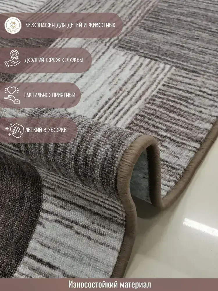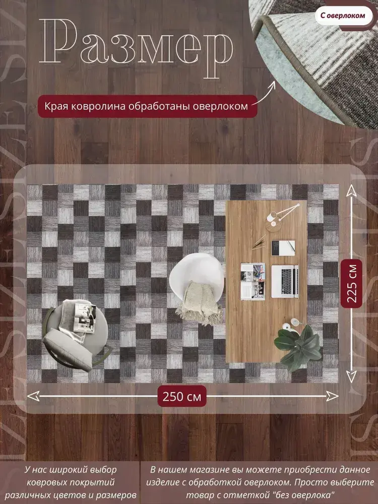 Ковролин метражом 2,5х2,25 м, безворсовой "Плитка", коричнево-серая с оверлоком