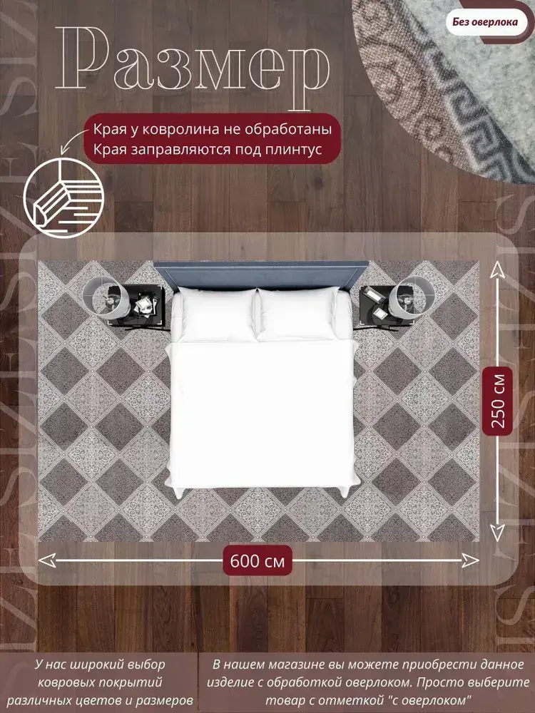 Ковролин метражом 2,5х6 м, безворсовой "Каскад", бежево-коричневый без оверлока