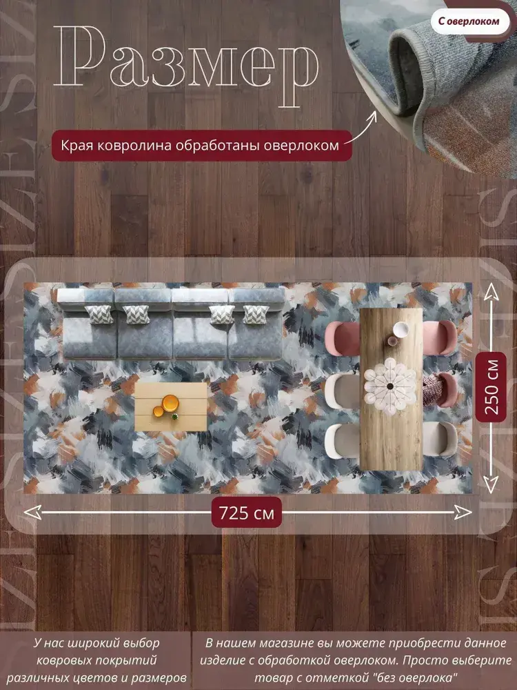 Ковролин метражом 2,5х7,25 м, безворсовой "Акварель", многоцветный с оверлоком