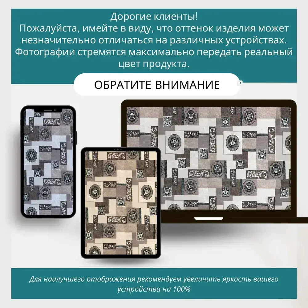 Ковролин метражом 3,5х2,75 м, без ворса "Пэчворк", бежево-коричневый с оверлоком
