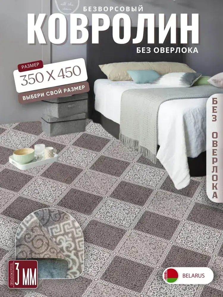 Ковролин метражом 3,5х4,5 м, безворсовой "Каскад", бежево-коричневый без оверлока