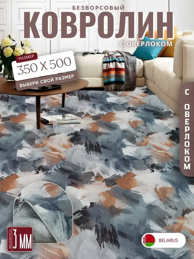 Ковролин метражом 3,5х5 м, безворсовой "Акварель", многоцветный с оверлоком