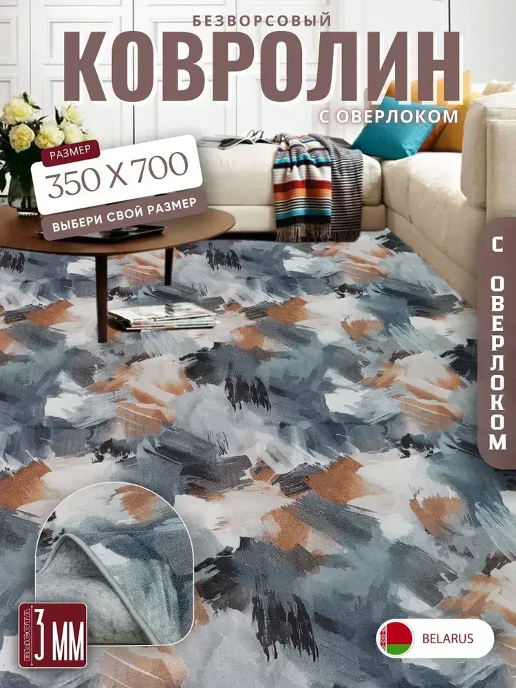 Ковролин метражом 3,5х7 м, безворсовой "Акварель", многоцветный с оверлоком