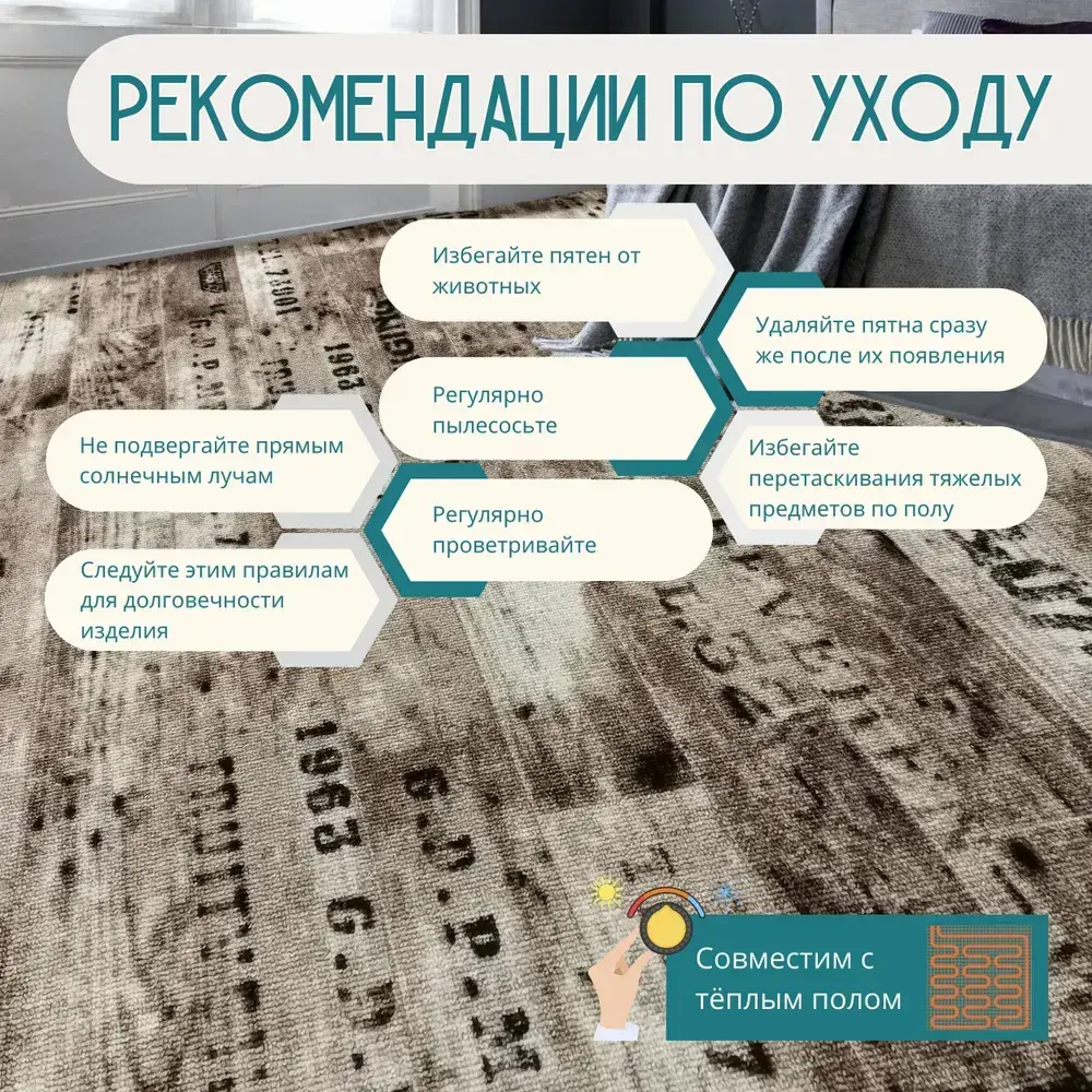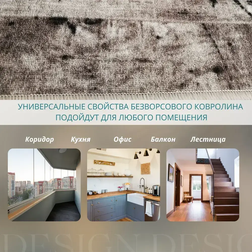 Ковролин метражом 3х2 м, безворсовой "Шрифт", коричневый с оверлоком