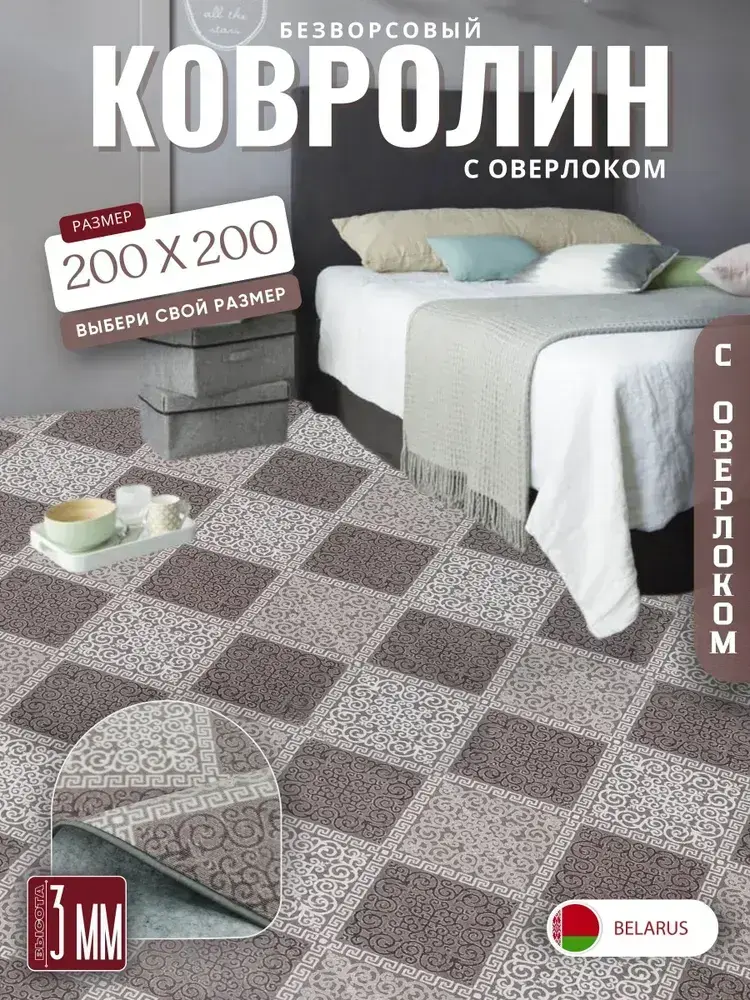 Ковролин метражом 4х3,25 м, безворсовой "Каскад", бежево-коричневый с оверлоком
