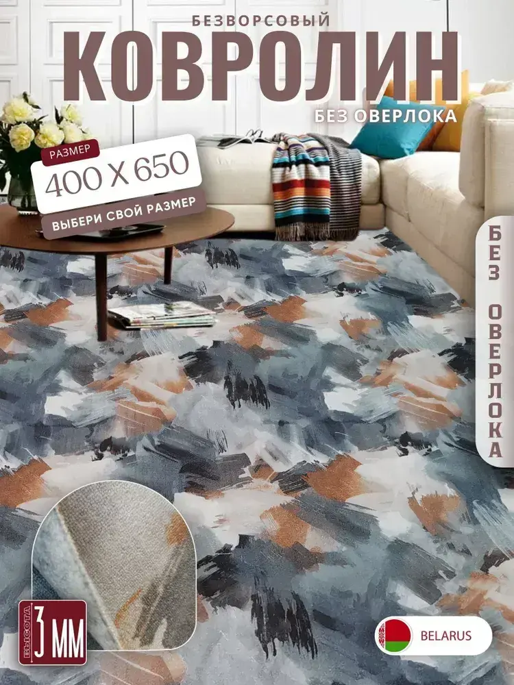 Ковролин метражом 4х6,5 м, безворсовой "Акварель", многоцветный без оверлока
