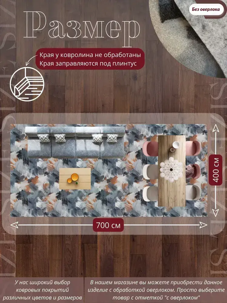 Ковролин метражом 4х7 м, безворсовой "Акварель", многоцветный без оверлока
