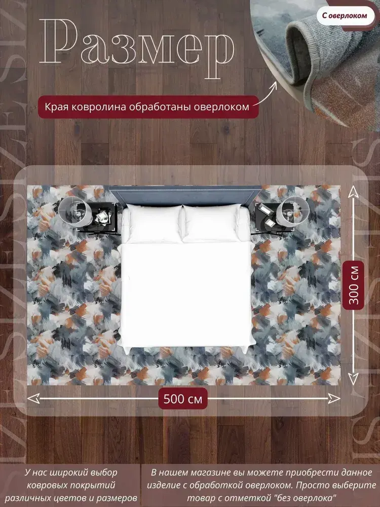 Ковролин метражом 5х3 м, безворсовой "Акварель", многоцветный с оверлоком