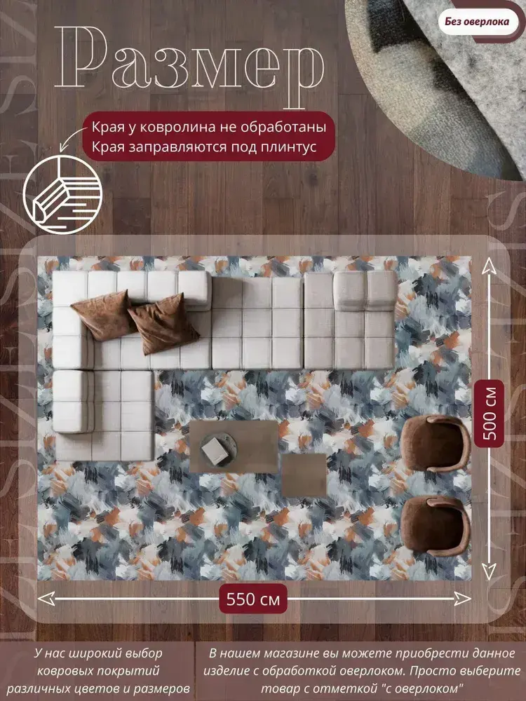Ковролин метражом 5х5,5 м, безворсовой "Акварель", многоцветный без оверлока
