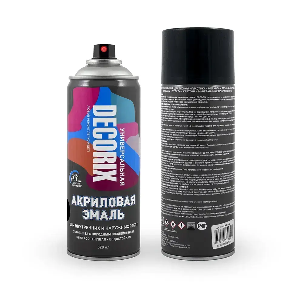 Краска черная в баллончике глянцевая акриловая DECORIX - эмаль аэрозольная для любых поверхностей 520 мл